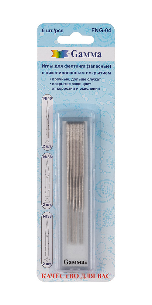 Иглы для валяния (фелтинга) запасные в блистере 6 шт №40 тонкие - 2 шт., №38 средние - 2 шт., №36 толстые - 2 шт.
