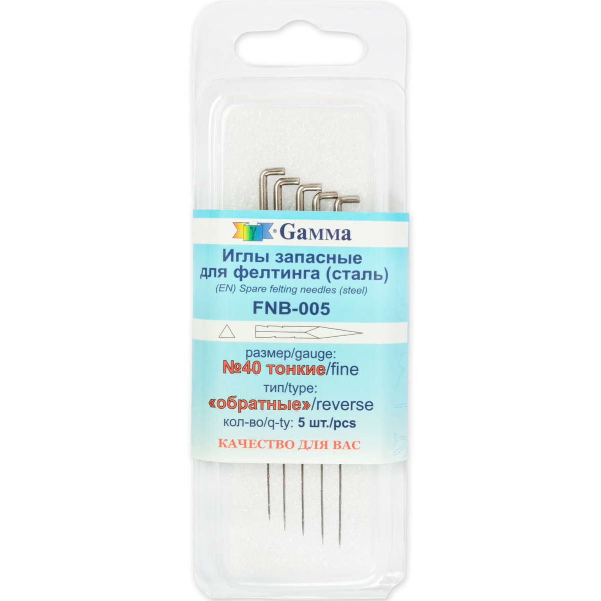 Иглы для валяния "Gamma" FNB-005. В блистере 5 сменных игл для фелтинга c треугольным сечением, с обратным направлением зубьев. Иглы очень острые, поэтому рекомендуем работать не спеша, на подложке. При прокалывании изделия необходимо держать иглу вертикально, т.е. перпендикулярно поверхности. Боковые проколы могут сократить срок службы иглы. Игла с обратным направлением зубьев, легко входит, с усилием выходит из изделия. Позволяет доваливать изделия с обратной стороны, проткнув его насквозь /для мест с неудобным доступом/. Также позволяет "начесывать" шерсть или перемешивать глубоко лежащие волокна с поверхностными волокнами, разных цветов. Игла используется для окончательной /отделочной/ обработки шерсти и для создания ворса на готовом сваленном изделии. Иглы обработаны маслом, оно защищает иглу от ржавчины. Перед работой иглу необходимо протереть сухой тряпочкой и можно работать.