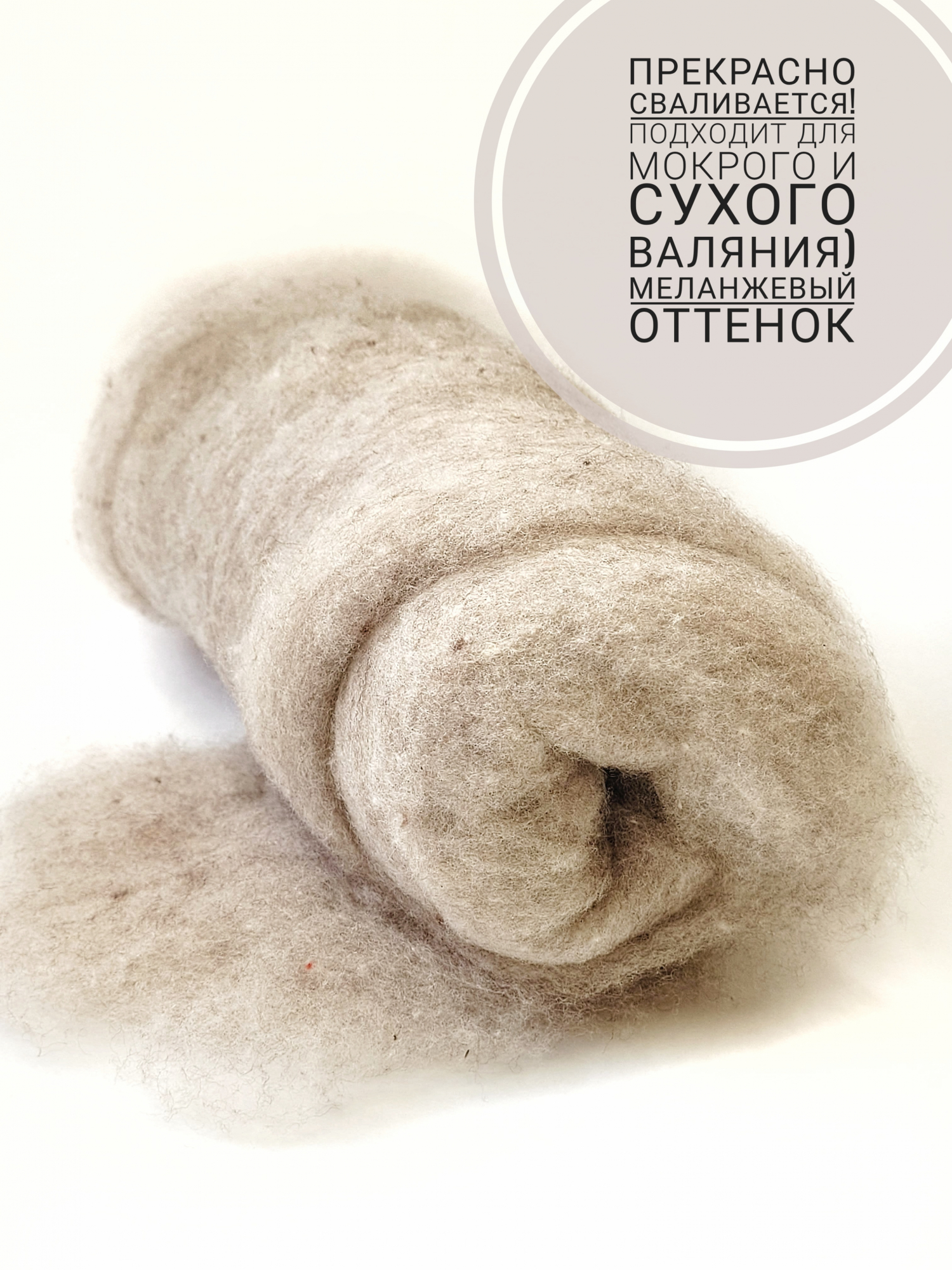 Шерсть для валяния кардочес, породы овец Ставропольский меринос. Данная порода овец славится высококачественной шерстью с ровной толщиной шерсти по всей длине. По качеству шерсти данная порода полностью идентична с породой Австралийский меринос. Данная шерсть представлена в виде кардочеса в полотне (шерстяная вата), волокна в кардочесе расположены в разных направлениях, что ускоряет и упрощает процесс валяния. Тонина (толщина волокна) 20-22 микрон. Кардочес идеально подходит для мокрого валяния (создание сумок, варежек, обуви, аксессуаров) и сухого валяния (создания игрушек, брошек, декоративных элементов), а также для шерстяной акварели (создание картин из шерсти), фелтинга. Изделия будут мягкими, нежными, гипоаллергенными и не будут колоться. Вес 50 гр +/-3 гр.